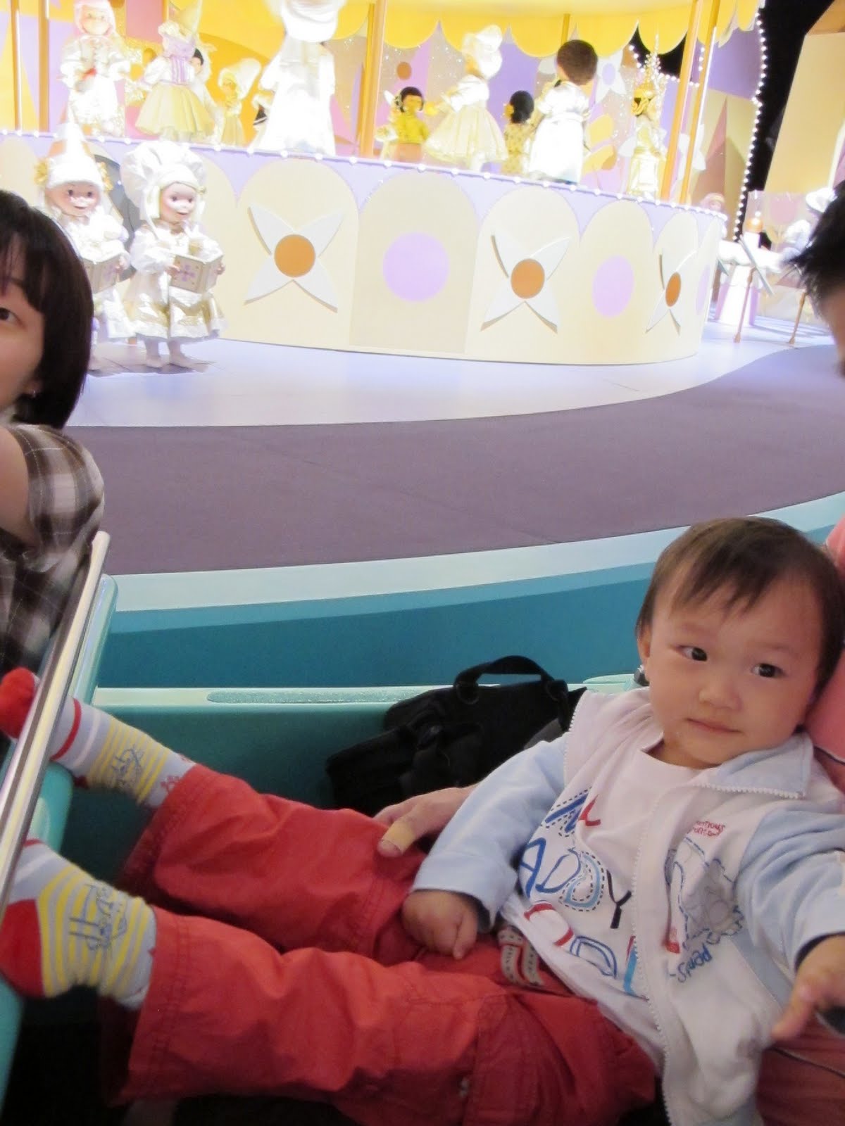 Think J enjoys the ride at It's a Small World in Fantasyland. Keep looking all around him.